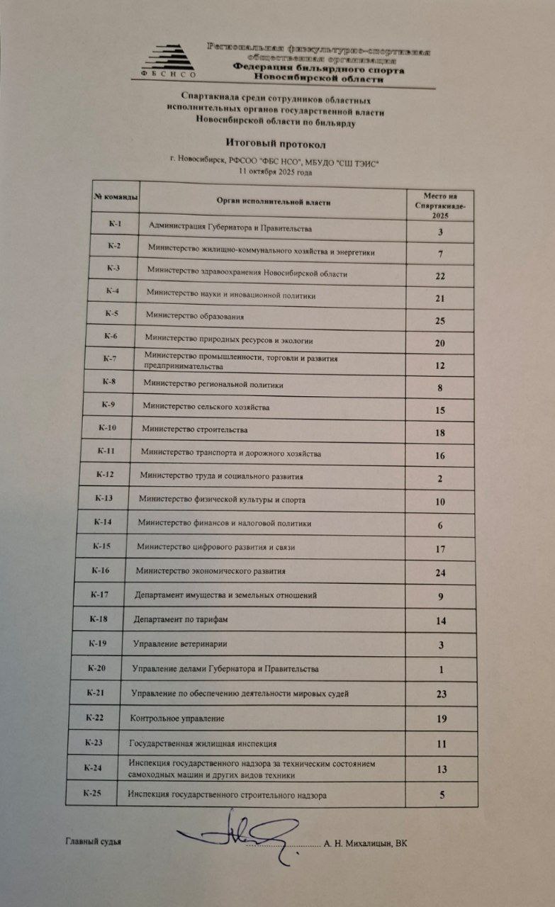 В этот раз тактика и строгий расчет команды управления делами Губернатора и Правительства обеспечила им победу со счетом 2:0. Серебряный пьедестал достался бильярдистам министерства труда и социального развития.